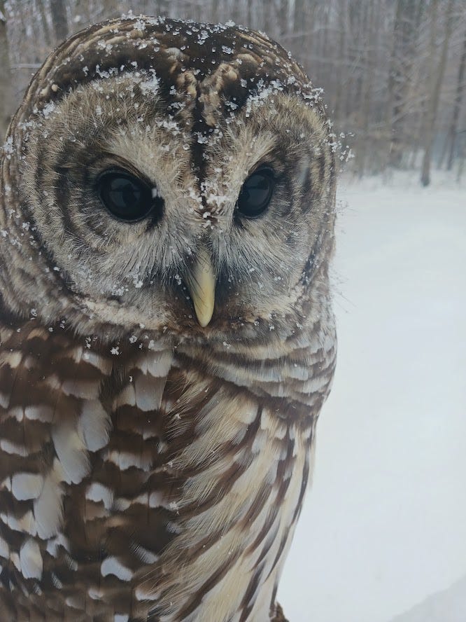 There is however one unobtrusive way to tell a male from a female raptor: when Oscar the Barred Owl lays an egg, you start to reconsider giving your birds gendered names.
