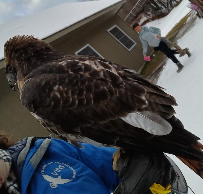 A handful of Red-tailed Hawks will survive those first few tough years, though, and live out closer to their full potential lifespan of 30 or so years. But, there are still ways in which human care can extend that. Birds are susceptible to some of the same diseases of old age as we are, including arthritis and cataracts. Not being able to see prey as well as you once could, or move swiftly to catch it, shortens one’s lifespan at that point as well. In human care, hunting is not crucial for sustenance, and we can provide accommodations that make dealing with the occasional, mild aches and pains a little easier.